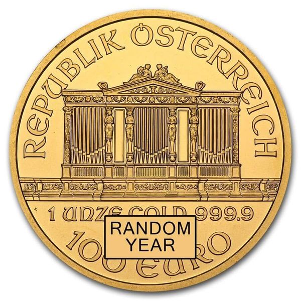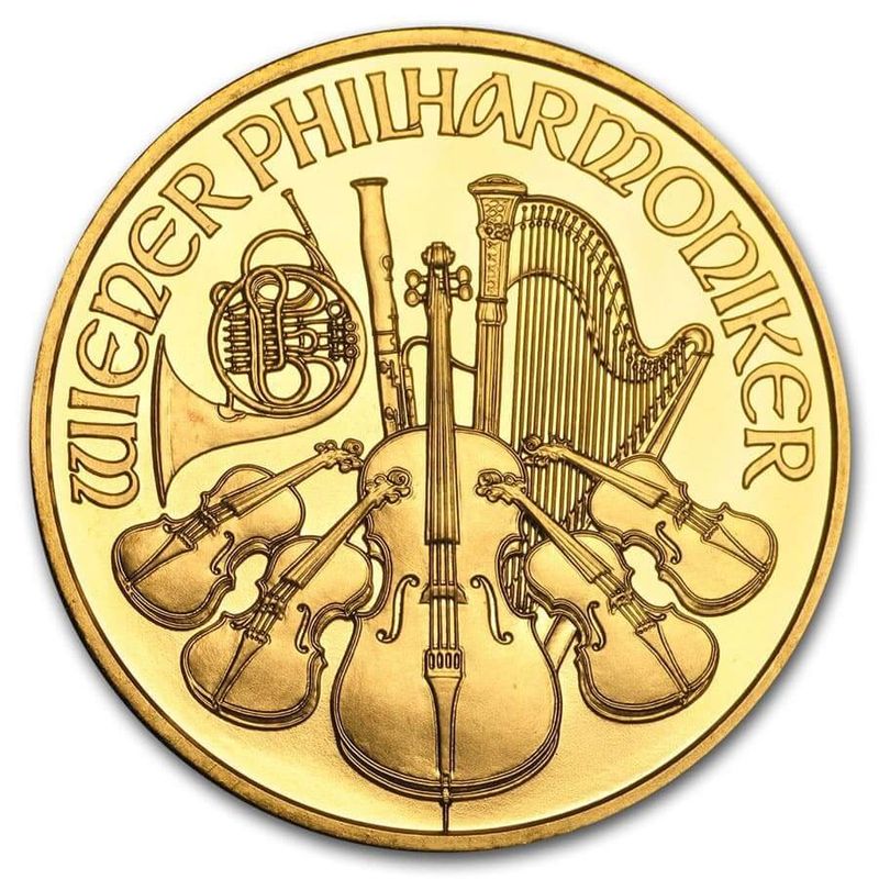 These 1 oz Gold Austrian Philharmonic coins are .9999 fine Gold may be from any year. Buy Gold Philharmonics to add to your Gold portfolio.