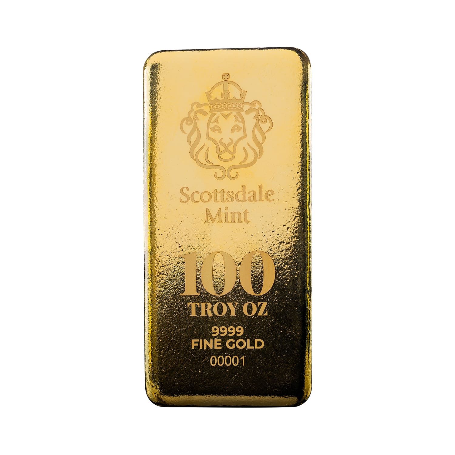 Produced through Scottsdale Mint’s precision casting process, each bar features the distinctive Scottsdale Mint lion hallmark, stamped weight and purity, and a unique serial number for easy verification and authentication.